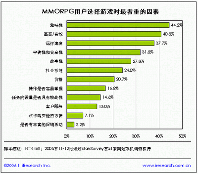 根据相关资料调查显示,一款网络游戏吸引玩家的主要因素有:游戏的情节、美术设计、音效、收费模式及标准、上手难易程度等等。由此可见,美术设计在一个成功的网络游戏中,占有相当的份量。