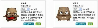 熊爸爸趁着熊妈妈出门买菜的时候,在好朋友流氓兔的带领下与宝贝儿子熊宝宝一起偷偷来到了《劲舞团》,准备大闹一番。熊爸爸的个性冷静,外表看似凶恶,常常与流氓兔一起登台演出,所以有他陪伴在玩家身边,一定会发生很多有趣的故事的呦。熊宝宝作为一位天真活泼的少年,性格虽然善良,但是继承了熊爸爸的基因,十分的贪玩,相信同样也会给玩家们带来无数欢笑的呦!