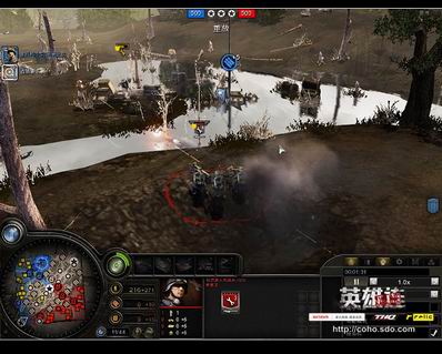 下方胜利点处,坦克猎人对工程兵的抢点作战开始,话说距离拉开的话,工程兵相对拿双筒的先遣兵还是很吃亏,虽然对人伤害皆为1。(飞过水面的炮弹有倒影......)
