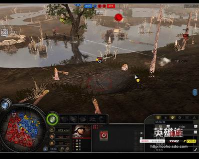 下方胜利点处,坦克猎人对工程兵的抢点作战开始,话说距离拉开的话,工程兵相对拿双筒的先遣兵还是很吃亏,虽然对人伤害皆为1。(飞过水面的炮弹有倒影......)
