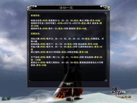 在《诛仙》中,每个节假日、每个月、每一周甚至每天的不同时段,都有着各种独特的活动在进行,不论任何时候你都可以参与各种有趣的活动和任务来获取你最需要的奖励。