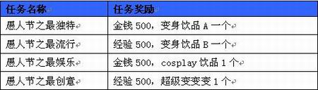 愚人节还有丰富的任务哦!送大礼、送经验!小编难道变成了放羊的小孩了吗,别怀疑,这次可是真的,四个连环任务,帮你把整蛊道具和超高经验收进口袋。咱们开始吧,“愚”乐一下!