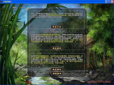 在出现输入账号密码的时候优美的音乐就想在耳边,首先是钢琴轻轻奏响,舒缓的节奏让人心神安宁。随后音乐中逐渐出现民族乐器,仙音袅袅带给人置身田园般的感觉。这让我想起了班得瑞的音乐,与此相比,《刀剑英雄Ⅱ》这首开篇音乐不但带给人诗情画意的唯美感受,更重要的是用了一种较为通俗的方式弘扬了国乐,因此爱若狂风强烈建议大家仔细听听这首乐曲,轻闭双眼,你便可飞临仙山……