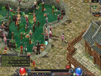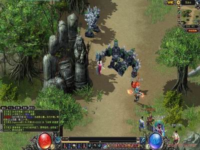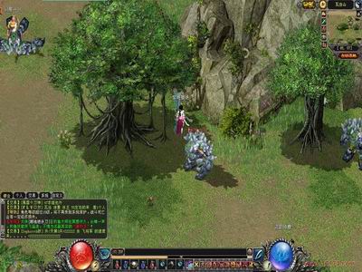 认真看下方物品栏等部分,无论是红球中的花纹,还是包围的那些纹饰都非常美丽,这些细小的部分会使玩家产生出不少好感。最后狂风注意到图标中似乎有些内容显得鸡肋,不过一个非常好的框架搭建起来,修改上也就非常容易了。 野外树荫下,我们来仔细用猥亵的眼光看看游戏人物。首先狂风注意到散仙MM手里的法杖,立体效果十足,甚至连法杖上龙形纹饰的光影都清晰可见,MM脑袋会随着鼠标晃动扭过头去,动作很流畅。
