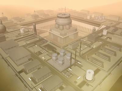 乍看是一处建立在沙漠中已经被荒废的发电站,其实这所设施的真面目是某势力设立在沙漠中的资源库。于是一场围绕着资源争夺的战斗马上开始了。这个场景主要围绕中心的发电设施构成,中心结构隆起四边下沉,外围则由小型建筑物构成。因此这场地图中的游击战频发、而争夺中心的战略点的空中站将成为胜负的关键。