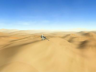 沙漠总是万年不变,在日光的爆晒下无时不刻不展现地球环境最为堕落以及无情的一面。在一望无际的沙漠中,沙尘风暴使得能见度格外不佳。沙漠中虽然没有建筑物品的痕迹,然而天然的沙丘却成为了最好的掩体。熟练的机师们会利用这乍看平淡无奇的地形施展包围和突击战略,相反,小看自然的力量则会遭到失利的教训。