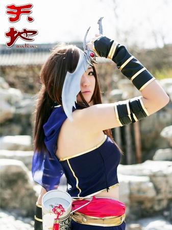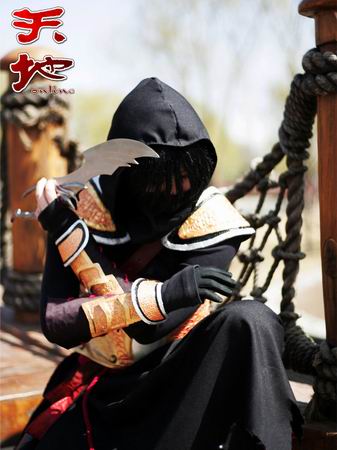 这位名叫千迹的MM声称,自己平时有两大爱好,一个是COSPLAY,另一个就是玩网络游戏。而不管游戏中有什么职业,她最喜欢的就是远距离强力攻击职业,比如弓箭手或刺客一类。既可以远程攻击,又可以隐身靠近对手,对敌人发动强大的背攻,还可以设置陷阱,感觉总有一种神秘的气质,让她很是着迷。所以最终选择了这款游戏中的刺客做为COSPLAY的对象。