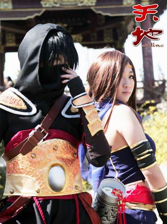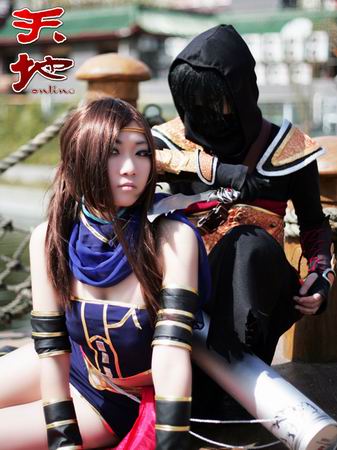 从图片上来看,千迹MM很好地把握住了此类职业的特征,敏捷灵活的刺客形象在她身上有了很好的体现, 冷艳高傲地表情展出一个女刺客的率真性情。同时,巧妙地把刺客的身上杀气藏在性感之中,这样的女刺客一出现,可能敌人早就在惊艳之时倒下了。而她的搭档则很好的体现了刺客的神秘,两人相互配合,完美地COSPLAY了男女刺客。