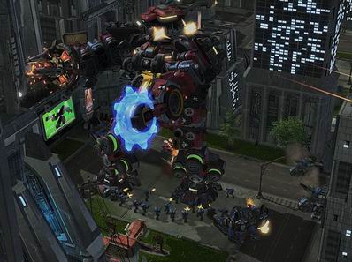 Blizzard针对《星际争霸2》公布人类最新强大武器单位“Terra-tron”,当人类面临被敌人包围、危机重重时,玩家可以将自身领地的建筑物组合成一个巨大机器人,以便守住最后防线。