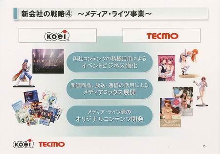 4月1日,以《三国志》、《大航海时代》等游戏出名的日本游戏公司KOEI和以《死或生》出名的日本游戏公司TECMO正式合并,公开了新公司网站。