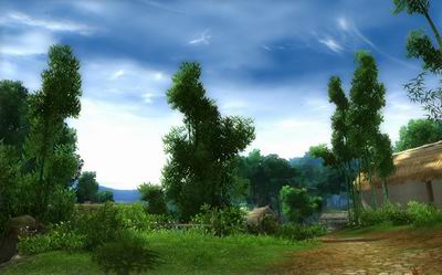 进入游戏后,新手村的远山碧树、村落茅舍,把人拉回到那个“阡陌交错、鸡犬相闻”的古朴年代。随着角色的移动,远山由远至近,景色由模糊变清楚,所到之处,满目苍翠,让人心旷神怡。笔者采用的是中配效果,但所见《剑网3》之人仍赞不绝口,感叹不已。