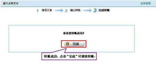 第四步:转账完成。单击“完成”按钮可以继续转账。