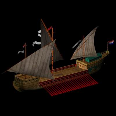 还记的《大航海时代2》中就有类似的船只,航速能达到惊人的15节,而整艘船所必须的水手却仅为15人左右,因此,船只能够保持海上的长时间航行而不必担心补给。