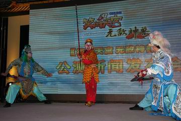 现场免费赠送的游戏资料和电子礼品均被一抢而空。众多玩家们都在试玩区争相感受《笑闹天宫-无敌神兽》最新更新的神兽系统,其威武的外观以及强大的实力都不乏成为人们尝试的主要对象。而模型合影区更有突现会场的两位cosplay超美女玩家,其专业的装束当之无愧成为了众多玩家的焦点,可见她们对本游戏的热爱之疯狂。整个发布会的过程还穿插了许多颇具观赏性的表演节目。特别是精彩的《闹天宫》表演,将气氛带入了一个小高潮,其表演环节安排得专业而紧凑,得到了与会人士的一致赞许。