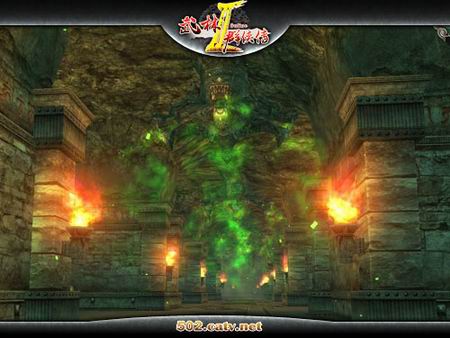 终于你们来到了岔口,三条通道分别被闪烁着绿光、橙光和紫光的门挡住了去路,究竟哪道门才能开启机关继续前进?就只能凭运气了。如果开启错误的门进入后会被一群蝙蝠围攻,即使消灭了它们也无法启动门内机关;开启正确的门则会发现一只蝙蝠BOSS正等候这你们,杀死这个BOSS,就能启动里面的机关继续在古墓探险。
