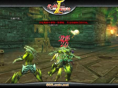 在这长久无人踏迹的古墓里,阴暗潮湿的瘴气扑鼻而来,更有成群成群的古墓冥蝠和古墓尸煞团团将你围住。当然这些都是小case,队伍成员不必太理会,由医生职业的玩家给大家加好状态顺着这狭长通道一直往前奔即可。