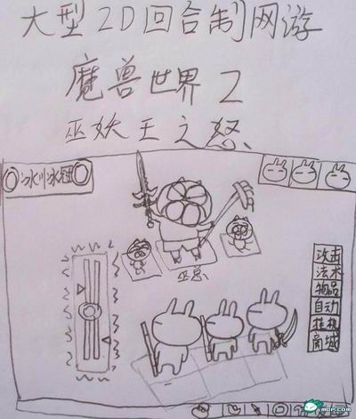 一向号称恶搞的mop碰上这事自然不愿放过,画出一张铅笔画略表心意。画中的意思又将网易自主研发的回合网游和《魔兽世界》联系起来。