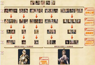 Ⅱ. 而从第2层级开始,将可以选择不同的纵向路线(共5条路线)升级至下个层级。只要找到您偏爱的NPC角色,免费领取那条路线上的NPC卡片,创建NPC角色并练级至路线图要求的等级。这样您又能够获得更高层级的NPC角色了!