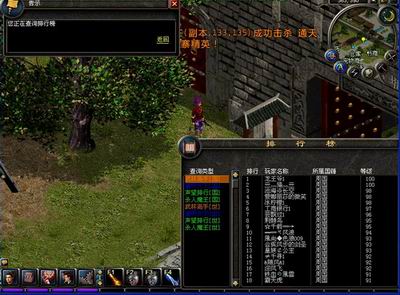 及时通报能让你知晓国家内的大事小情,而各个城市中的公告栏则让各位英雄放眼世界。在武功,声望,PK值,财富四大版块上,可以看到国内和世界的最新排名,如果你想成为江湖中赫赫有名的高手,那么就经常到告示栏看上一看吧,武林中谁进步飞速,谁稳坐江山,全都尽在眼前。