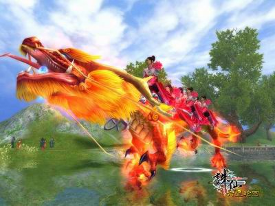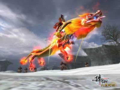 在古老的神话中说,瑞鸟凤凰在每次死后,会周身燃起大火,并在烈火中获得重生!如此周而复始,获得永恒的生命。故凤凰也有“不死鸟”之称。如此神奇异兽化身《诛仙》飞骑“火凤”,带你我遨游长空!那硕大而华丽的双翼,一身火红的翎羽在阳光的照耀下仿佛燃烧着炙热的火焰!飘逸的凤尾上妆点着一片片钱眼图案的美丽花纹!让人不能忽视!