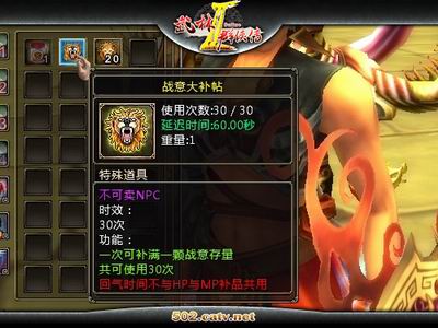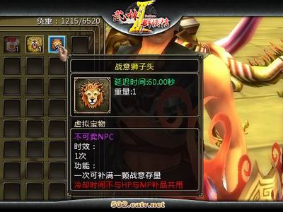 在《武林群侠传2》中,灵活应用战意技能是各路高手达到武学巅峰的必经之路,通过释放战意技能,不仅能将角色的能力值大幅度提升,还能立刻解除定身、混乱、昏迷、石化等不良状态,是左右战局胜负的关键力量。如此神奇的效果,想必每位玩家都会为此大呼过瘾吧!通过“战意狮子头”、“战意大补帖”等道具更可将角色战意持续使用,无论是PK对战还是练级打怪,都将取得事半功倍的效果。但是,“战意狮子头”只能补充一颗战意豆;“战意大补帖”也最多补充30颗战意豆,如果存放大量战意道具很容易占用宝贵的背包空间与负重,那么,有没有什么办法能够解决这个问题呢?