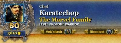 一位叫Karatechop玩家的公会原来只是个休闲公会,不过在3.1补丁上线之后,他们公会就以让人惊讶的速度不断扫荡着奥达尔副本的BOSS,许多其他好奇的玩家就开始查询他们进度突飞猛进的原因,发现名为Karatechop的玩家一击最高伤害为3亿5千万。并且此人拥有许多让人难以想象的变态成就。