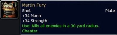 于是有人开始查看他的英雄榜,惊讶的发现,他拥有一件GM衬衣:这件衣服的能力就是秒杀30码范围内的一切生物.....