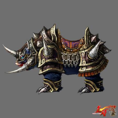 战熊,来自南蛮之地的凶猛野兽,据说,经过驯化后即成为在沙场上与主人一道浴血奋战的坐骑。如今在《赤壁》中战熊作为各位玩家的坐骑,将陪伴玩家一同驰骋未走完的三国之路。而玩家们也惊奇的发现,全新神秘猛兽有着战熊的威猛,所不同的是身披坚厚铠甲,锋利的刺形搭配,让整个猛兽威猛无比。
