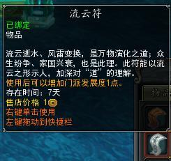 寻仙的门派系统新增了点名任务,您在每天上线后别忘记去洞天福地找执事道人签到。执事道人念你勤勉好学,会给您数量可观的经验奖励,同时您还能获得增加帮派发展度的道具流云符。