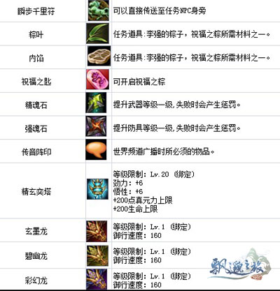 在端午节5月28日9:00——6月4日10:00期间,凡是超过10级的各位修真者可以在天缘城极霄殿上的NPC“凌云”处接取任务——李强的粽子,接到任务的修真者可以由帝阳城以及皓月山城附近的怪物身上取得任务需求的道具“粽叶”与 “内馅”并在天缘城的制器商会管事处购买获得“糯米”。完成后就能获得经验5000;金钱100以及“祝福之粽”的奖励。祝福之棕在商城购买“祝福之匙”打开,在千化洞也有一定几率掉落钥匙哦。