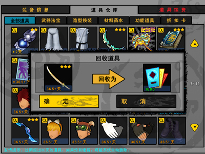 每次看着一仓库不再使用的武器、服装,扔了心疼,放仓库里又会堆积如山,怎么办?全新的道具回收系统可以让您把不再使用的武器、服装进行回收,回收后游戏会按此道具的剩余使用期限给予一定比例的游戏代金券返还。