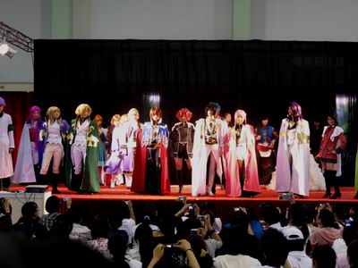 hagaren:从2005年开始 参加朋友的比赛团。2007年开始是自己带团,出的就是《反叛的鲁路修》。社团说不上,我们其实是算一个家庭一个集体。朋友和朋友和朋友的朋友在一起,不断的增加。所以才叫爆青筋家族。关于爆青筋家族是2008年组织起来的,为了反叛的鲁路修,为了大家所喜欢的东西比赛所需要的程序,所需要的人,所需要的准备和支持是不可少的无论从哪个方面,集体之间都需要配合和付出组比赛团是给自己找罪受的我为了团哭过、吵过、忍耐过,朋友也同时忍耐了我。虽然我们没有什么很值得一谈的成绩和荣誉,我想得到的只是和朋友一起上台比赛的那段快乐和兴奋的过程。 问题三:点评所cos的参赛剧目