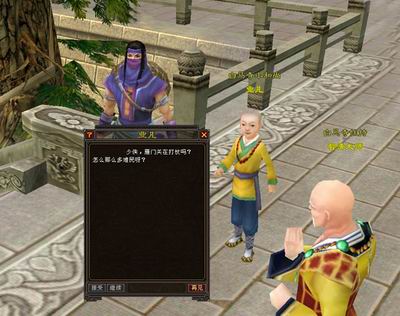 洛阳白马寺的【业凡】(77,54)小朋友,年纪虽小,但在佛门的修为让他拥有了普渡众生的慈悲胸怀,他经常站在白马寺门口,眼望雁门关方向,问来往的侠士:“雁门关在打仗吗?怎么那么多难民呀?”眼中流露出了真切的关怀神色,作为大侠的你又怎能袖手旁观呢,赶快去找【业凡】,拯救天下百姓吧。最胸怀天下奖,送给【业凡】小朋友。