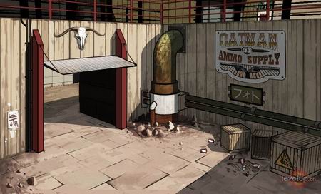 《赤钢铁2》的游戏舞台并未是与前作相同的现代化大都市,而是周围环境沙漠化的荒凉城市,虽然城市中依旧屹立着高楼大厦,但风格则完全“西部化”。游戏的主人公也是一身西部打扮,左手持左轮枪右手握***,甚是威武。