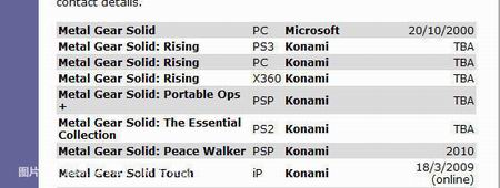 不过,《合金装备 崛起》并非由X360所独占,虽然在索尼的E3 2009展前发布会上没有公布《合金装备 崛起》也有PS3版的消息,而只是公布了另一款将登陆PSP的合金装备系列新作《合金装备:和平步行者》,但根据最新一期的日本FAMI通杂志介绍,《合金装备 崛起》将是一款同时登陆PS3和X360平台的作品。同时,从国外游戏媒体IGN的游戏发售表上看,《合金装备 崛起》甚至还将在PC平台上发售,这与当年的《合金装备2:实体》情况相当类似。