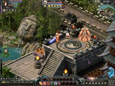 在《盛世Online》都城的中央位置,树立着一尊莲花战神雕像。也不知是为了纪念哪一代穿越而来的战神,受后世万人景仰,简直是太帅太让人妒忌了!听说《盛世Online》封测结束后,将为功勋排名第一的玩家树立这样一座雕像……羡慕ING。 在喧嚣浮华的都城一隅,慈悲寺安然地承受着万年香火。在不起眼的安静角落里,卧着一尊哭泣的睡佛。看到它,你的心会变得很安静,或许它是为人类祈福的慈悲观音。相信很多人路过都城,会忍不住欣赏遍布的荷花池塘。不过,都城右下方这片安静角落,在轻风蛙鸣之间与朋友品茶下棋,未尝不是惬意人生。