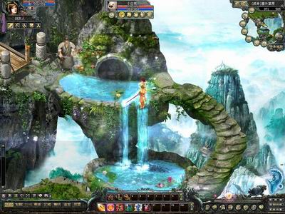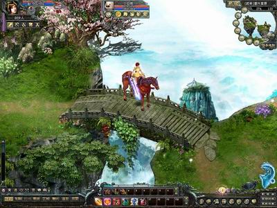 行至塞外草原,景色豁然开朗,草地与高山并存,可以仰望漂浮的大陆。其中,尤以“天关水瀑”景色最优美。云雾缭绕、池水飞扬,带来清凉的夏意。 说是紫竹林,这里未必有妖娆的青蛇白蛇。但我真宁愿在这种地方,隐居过一生,看上去,时间好像在这里停止了。要问《盛世Online》最高的地方在哪里,自然是在塞外草原;塞外草原最险的地方在哪里?便是这万仞天堑。小小一座桥,看上去没有任何防护措施,摔下去便是粉身碎骨。