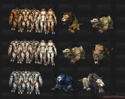 根据今天的蓝帖消息,德鲁伊动物形态在3.2版本中获得的新模型将同人物肤色以及发色对应,以下是暗夜精灵和牛头人肤色与新模型的对应图,大家可以点击放大察看: