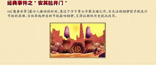 在2009年6月7日0时,九城陆续关闭《魔兽世界》的各大区服务器,并放出了它心中的《魔兽世界》经典事件回顾: