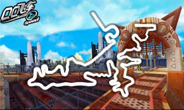 整条赛道位于遗失的蒸汽文明古国的机械公园当中,两条弯曲的铁皮管道被加入赛道中,让您体会到前所未有的新奇驾驶乐趣。“机械公园”整个赛道既包括传统的90度和180度弯,也包括斜面漂移和创新的U型坑漂移,为了增加玩法的多样性,还添加了另一条岔路,何去何从,很难抉择。