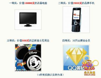 还没有参加活动的朋友们,您只需花费短短一分钟的时间注册91通行证,就可轻松参赛啦!根据答题的正确率,参加活动的所有玩家都有机会获得万元大奖的抽取机会哦,万元液晶电脑以及名牌手机,外加迪士尼的正版周边与30天QQ会员黄钻。迪士尼“梦幻答人”活动将送出今夏最火爆的昂贵大礼哦!