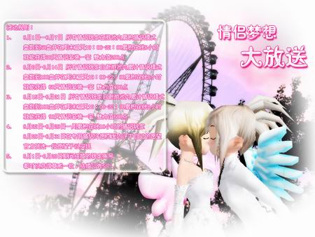 活动历时一个月,每周维护时都会发放上一周的活动奖品,让你边玩边收获,不过要注意的是,活动期间必须保持情侣关系,若解除了情侣关系,即使达到要求也无法拿到活动奖品喔。并且在线时长需要在游戏内登陆,MINIDANCE是不算在内的。新手玩家更有优惠,参与活动要求减半。
