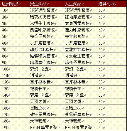 10级就能得到一套60天的迷彩运动套装,90级就能得到暗黑舞会套装等等……