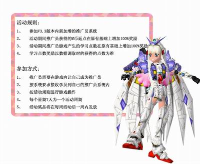 首先,免费申请成为推广员,接下来就要招收学员了。招收的学员可不能超过50个哦,否则这么多的学员,你可是会累得。学员必须是2个月内的新玩家,你如果你是俩个月内的新手玩家,而且你申请成为了推广员,那你就不能再成为学员咯。最后,推广员的经验会转换成学习点按比例分配给你的学员,而学员的消费就是你的辛苦工资哦。