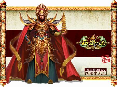 天王殿托塔李天王是天宫中的卫戍司令。李天王武艺超群,法力深厚,又对玉帝忠心耿耿,如来佛祖赐他一座舍利子如意黄金宝塔,在天界享有崇高而又重要的地位。曾任命他为降魔大元帅,统帅十万神将天兵。