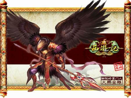 狮驼岭的大鹏金雕外号云程万里鹏。性格不符权威,神通广大,他是仅靠战斗力,而非依赖法宝或法力能胜过孙悟空的少数妖怪之一,是一个真正的大魔王。如来也说过只有自己才能收伏大鹏鸟。