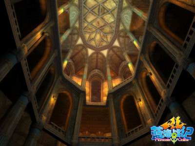 绕过雕像,进入了一个富丽堂皇的宫殿,里面的布置相当精美,抬头便可见到一个精致的多角形屋顶,散发着淡淡的肃穆之意。整个殿堂是由雕刻细腻的石柱制成,渗透着些许神秘的气息。