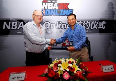 中国知名的互联网企业,国内领先的网络游戏研发、运营综合服务商腾讯公司正式宣布与美国Take-Two签约,建立合作关系,共同开发由美国NBA官方授权的《NBA 2K》系列篮球网络游戏。日前,腾讯游戏在总部召开了隆重的签约仪式,正式拉开双方合作的序幕。