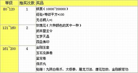 备注:本活动在服务器开服一个星期后开启,抽奖的次数将由玩家的等级来决定。