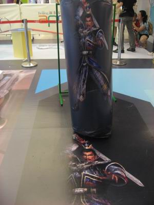 小贴士:“游戏向前冲”《真三国无双OL》大挑战环节,玩家需要挥拳击倒“无双大BOSS”人偶,使得人偶倒下击中布置在其背后的铜锣,以铜锣巨响为成功标志。